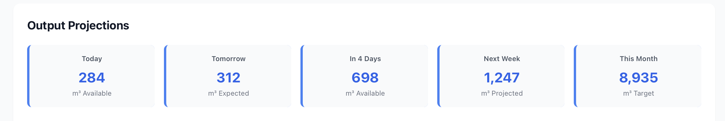 Bagian ini menampilkan perkiraan output produksi untuk berbagai periode waktu.