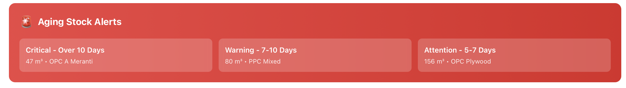 | Attention (5–7 hari) | Stok mulai menua. Perlu dimonitor agar tidak masuk kategori warning. |