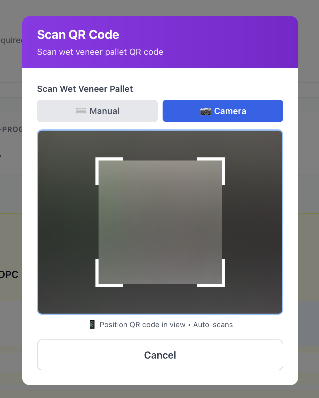 - Palet Sumber — Kode QR palet wet veneer yang diproses